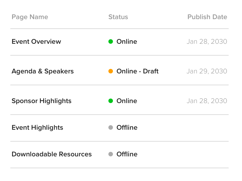 Questo approccio dinamico ti consente di attivare e disattivare le pagine secondo necessità, offrendo agli ospiti contenuti pertinenti durante tutto il percorso dell’evento e oltre.
